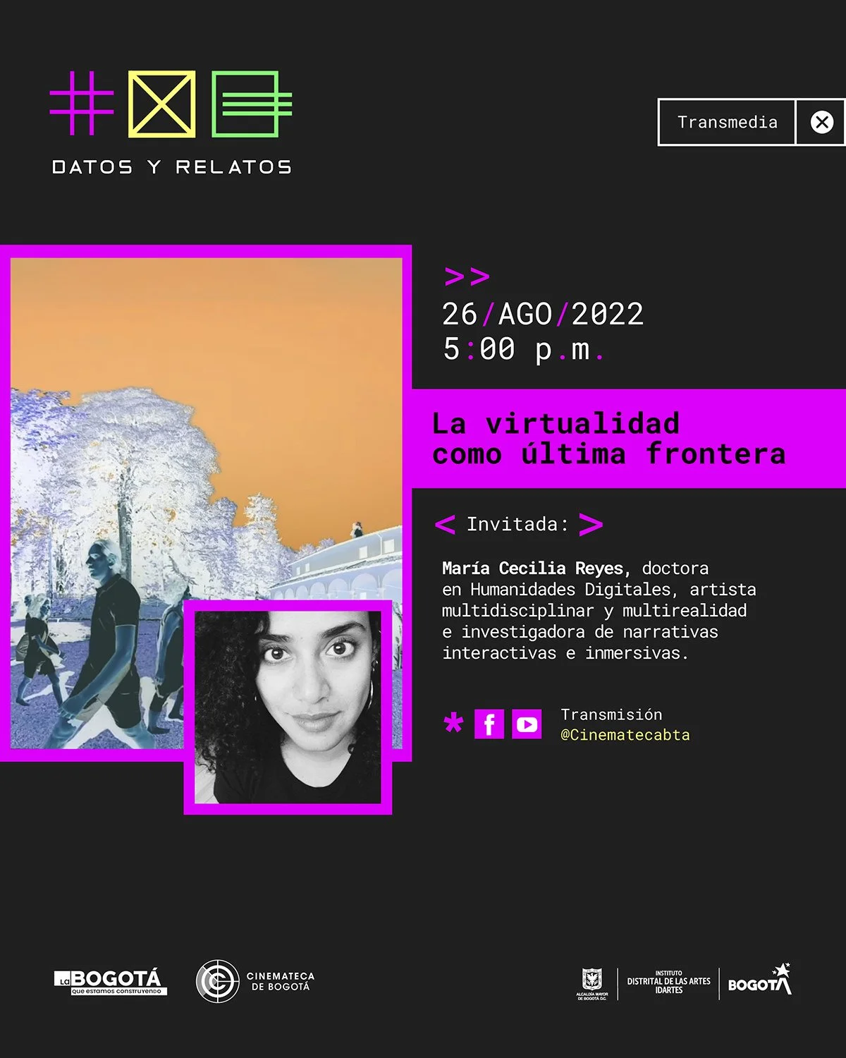 El próximo 26 de Agosto estaré compartiendo reflexiones sobre la virtualidad como frontera migratoria en el segmento #Datos y Relatos de la Cinemateca de Bogotá.